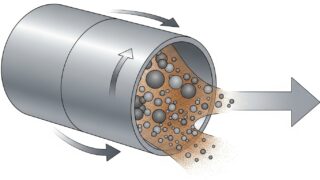 シンプルな構造ながら、ボールの材質や回転条件によって幅広い粒度制御が可能であり、