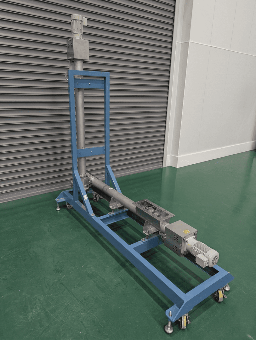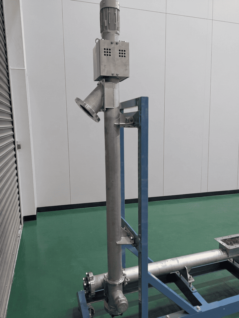 破砕機や混合機への原料投入など、手作業が残りやすい工程では、垂直搬送などコンパクトな搬送設備が有効なケースもあります。