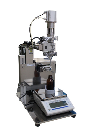 小型計量式ボトル充填機 液体充填 高価な液体を高精度で充填するための少量用計量式充填機 適応容器 小型容器 (ガラス瓶,プラスチックボトル) 計量範囲 最大1Kg以下(高精度秤) 充填速度 15~20秒/本(粘度・給液圧による) 計量精度 ±0.1%以内(フルスケール) ユーティリティ 電源:AC100V 単相 エアー源:0.5Mpa 外形寸法 (W)590×(D)1050×(H)1535mm 重量 約50Kg 卓上計量式充填機前の記事 横型ピストン式充填機次の記事